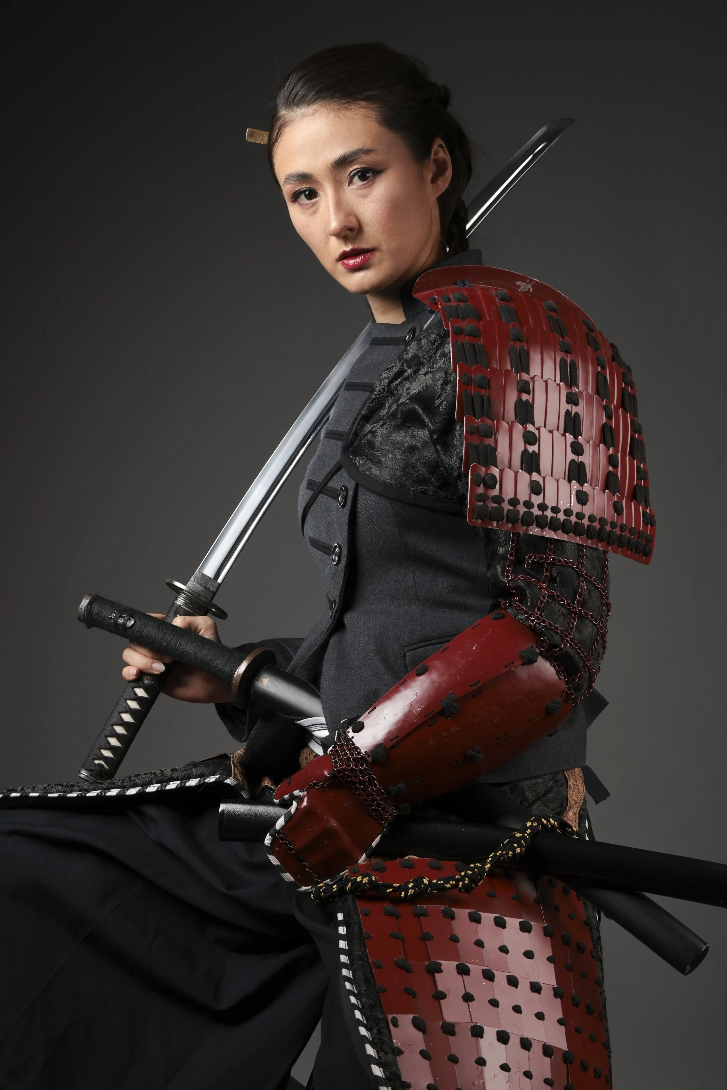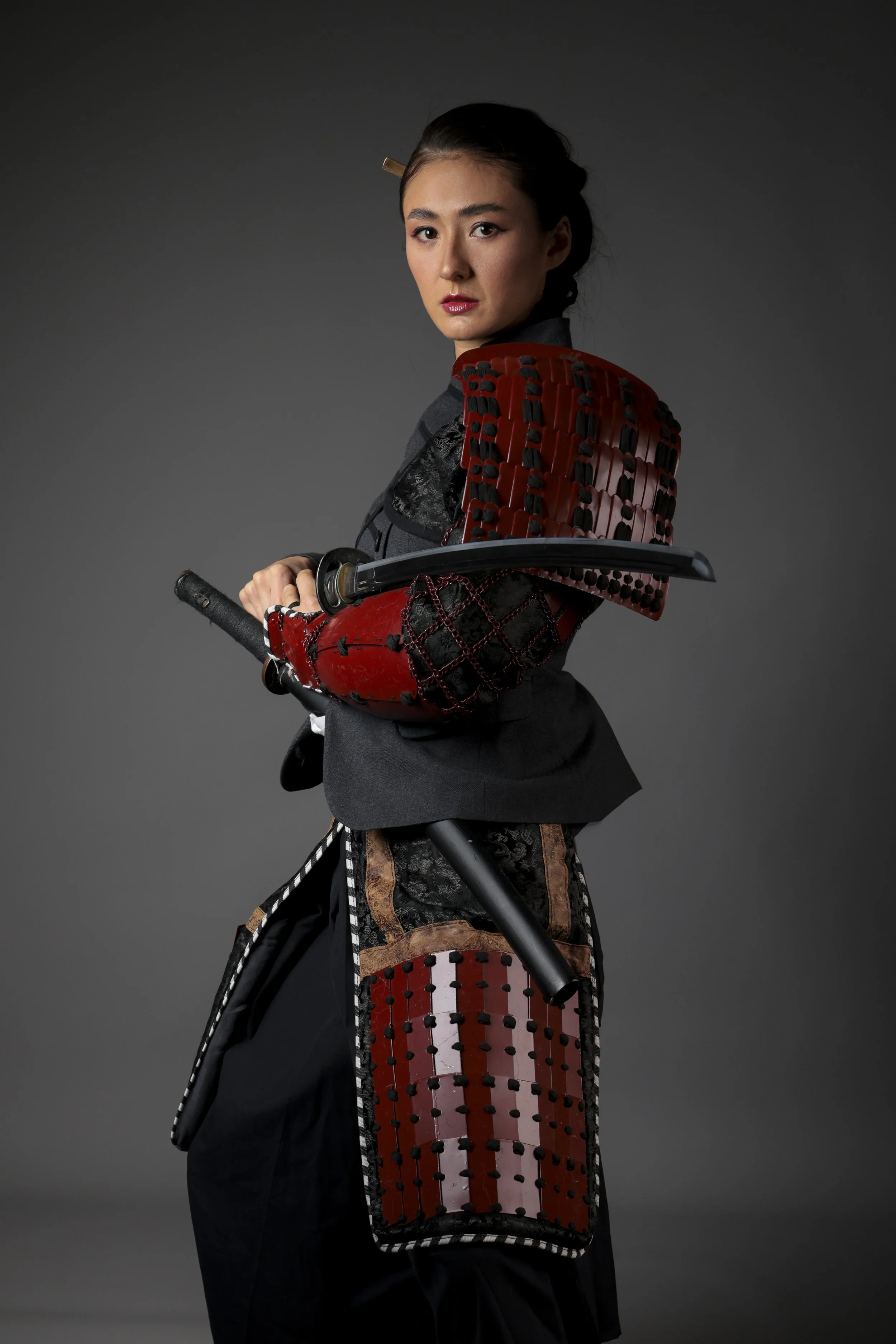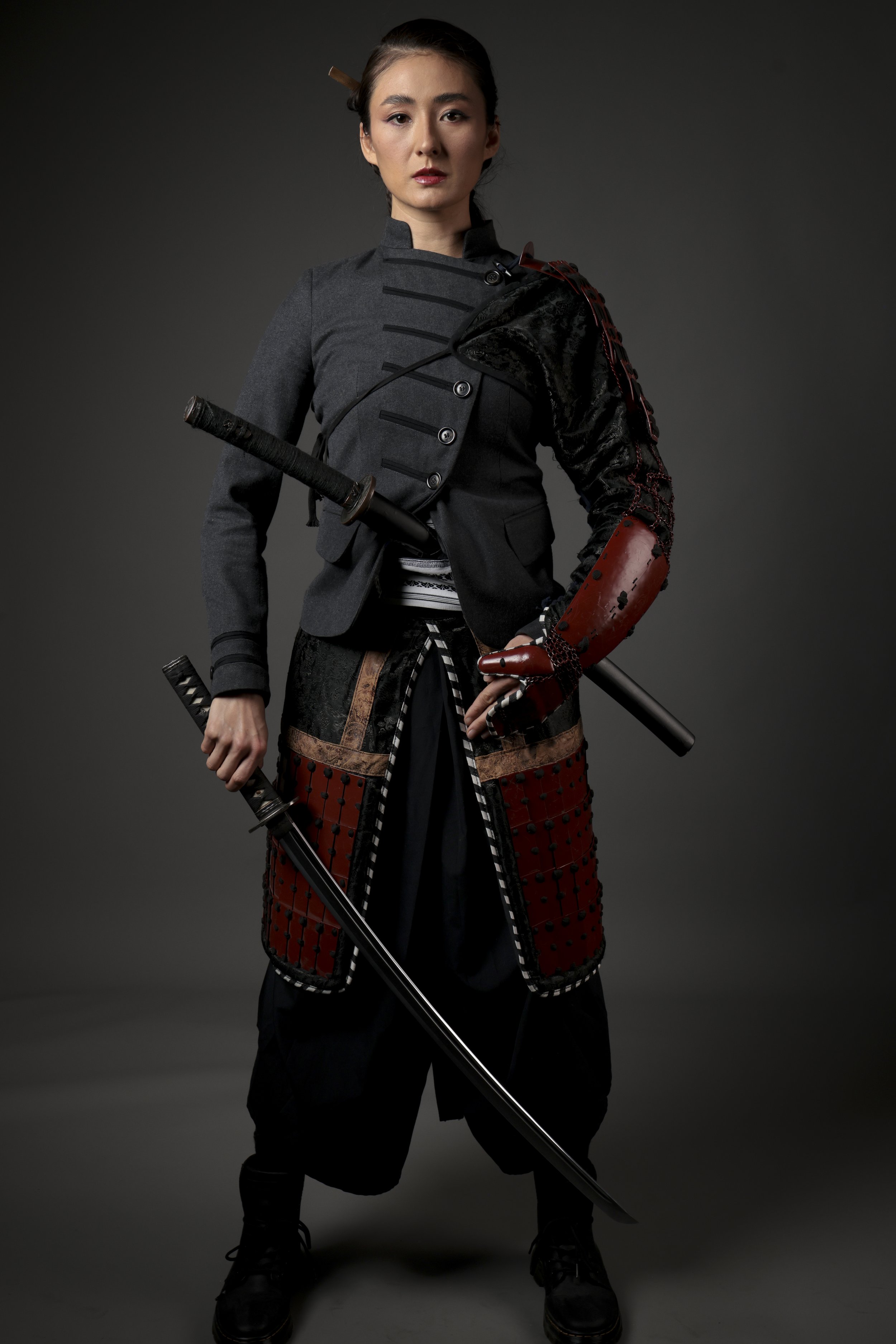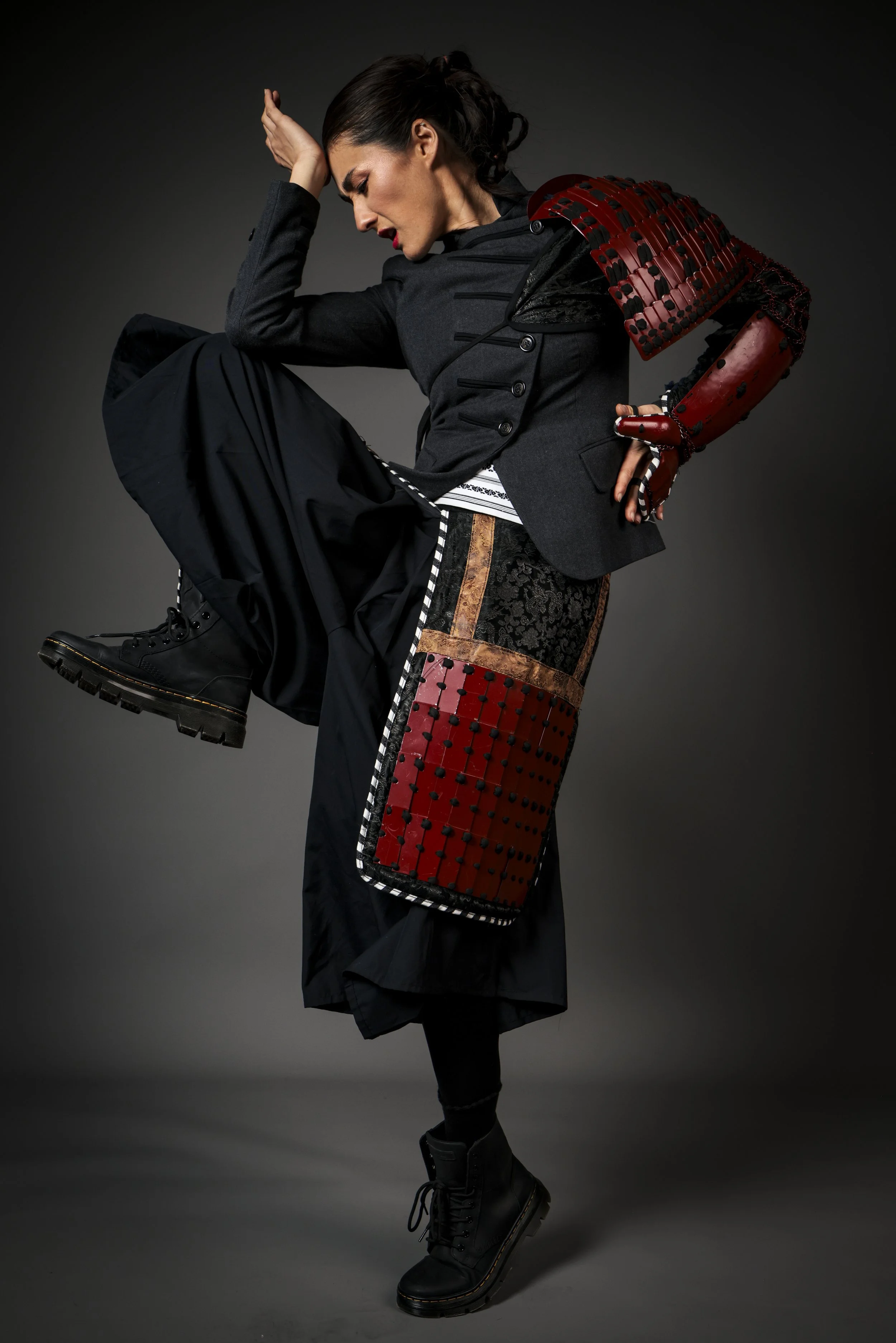 This shoot reimagines the Onna Musha to reflect the changing role of women in Asian society. Traditionally seen in kimono, not armour, women are here styled in yoroi-inspired elements, hakama, and a militant jacket. The contrast of heritage and modernity symbolises resilience, autonomy, and the breaking of patriarchal boundaries — a dialogue between strength and vulnerability.