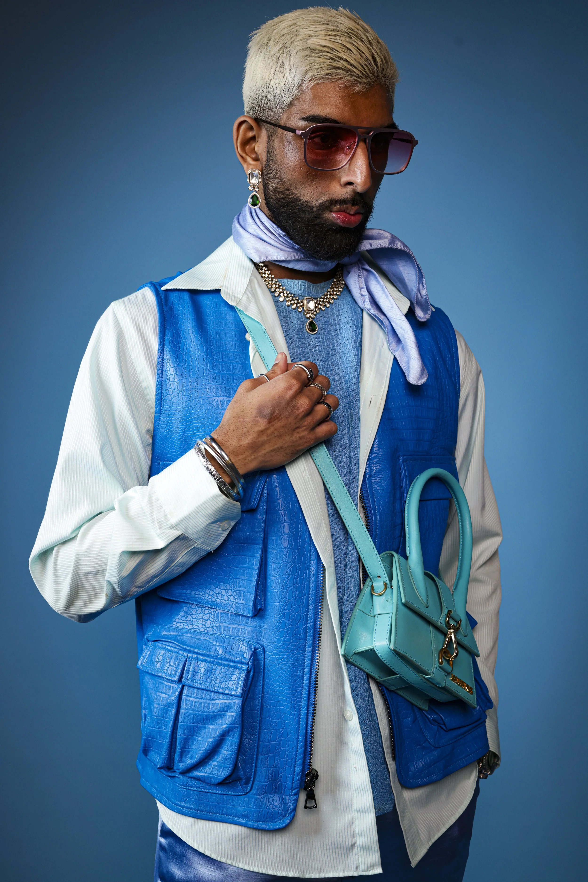 I first met Bhavninder Sanghera in 2023 during Australian Fashion Week. Amid the chaos of runway shows and street style, his look stood out immediately. What caught my eye was his unapologetic use of color and his effortless layering of textures—an approach that felt bold, personal, and unafraid.